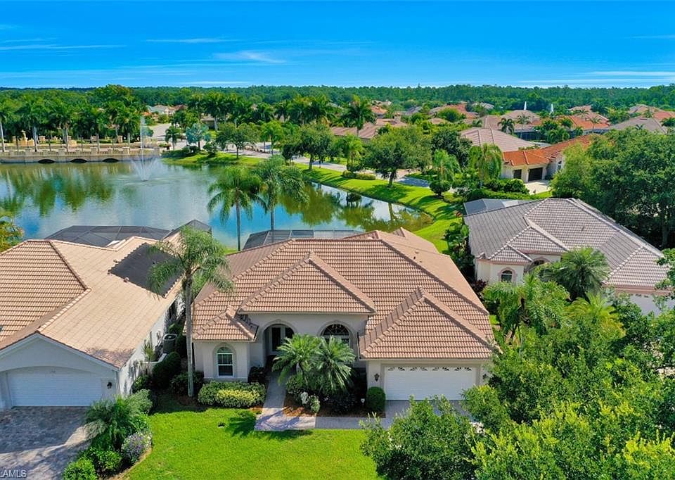 Welcome to Oak Colony, a private enclave of 18 homes in the Vineyards. This meticulously maintained 3 bedroom 3 bath pool home, with a gorgeous lake view, welcomes you. Across from the front of the home is a private, tree-filled park with benches and walking path. The open and inviting floor plan is filled with natural light. The kitchen features beautiful white cabinets with granite countertops, built in desk and volume ceilings. New GE Profile stove and microwave being installed! Enjoy beautiful hardwood flooring in the living, dining and kitchen areas. The spacious master suite includes walk-in closets and an inviting master bath with a separate jetted tub, shower and his/her vanities. You'll love the utility room storage space and sink! Enjoy the beautiful Florida weather on your screened in patio complete with your own pool and hot tub! The Vineyards offers an on-site shopping center, dining, medical, 2 championship golf courses, tennis courts, fitness center, 32 acre park and so much more.
