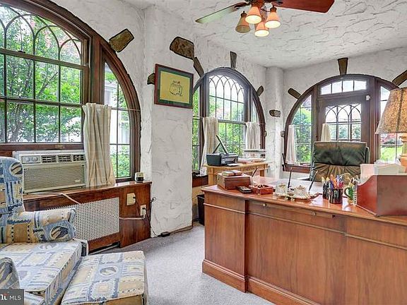 Beautiful English Tutor offering Old World Charm w/modern conveniences. This 2400+ sqft home is on the National Register of Historic Places & features Hrdwd flrs, Ornate woodwork thru-out, Stain Glass windows, Deep window sills & beautiful Stone FP. Spacious 1st flr offers Kit w/Tile flrs & SS appls, LR w/Gas FP, Sunrm w/great views, Sep. DR & ~ BA. 4 Car detached gar. Enjoy relaxing on the rear patio or 2nd story balcony. Beautifully landscaped!