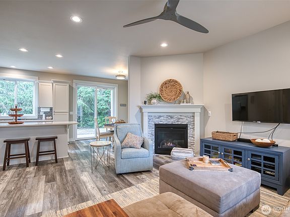 Propane fireplaceLarge kitchenPrivate setting among treesTankless hot water heaterGorgeous laminate flooringOversize windowsAmple cabinets