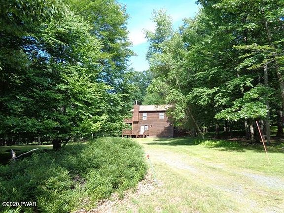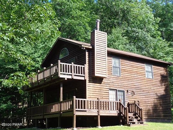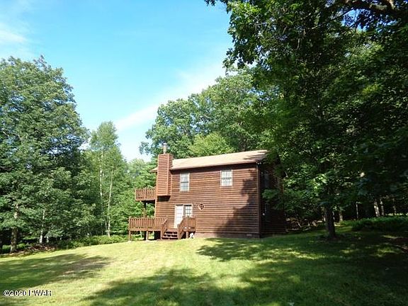 Log Sided House with Lake Rights. Private 1/2 acre lot at the end of a cul de sac. Move in ready. Open living room, dining area and kitchen design. Vaulted ceilings. Hardwood, tile and carpet flooring. Wood burning stove in living room. 3 bedrooms, 2 Baths. Entertainment and family room, first level. Upper, lower, and side decking. Lots of parking. Low taxes. Private access beach area on motor boating Lake Wallenpaupack. Close to restaurants and shopping. Quick access to I-84. Commutable distance to NYC and other metro areas. See Virtual tour.
