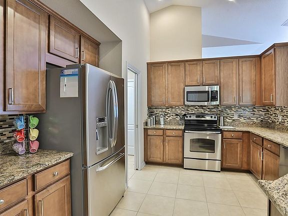 Welcome to Harbour Isles, one of Apollo Beach's premier communities. Beautiful home is located on a palm tree lined street & has spectacular curb appeal with tropical landscaping on an oversized lot. This gorgeous ranch home shows like a display & is immaculate. Exterior of house is charming & well maintained, consisting of a tile roof with rain gutters installed around entire house. Step into this stunning home that features a totally open floor plan with vaulted ceilings throughout, 18" ceramic tile flooring in living room, dining room, kitchen & master bedroom. Kitchen offers stainless steel appliances, 42" cabinets, granite countertops, breakfast bar, recessed lights, & a large kitchen pantry. Master suite has a large walk-in closet, oversized shower with hand rails & separate tub. Energy efficient ceiling fans have been installed throughout house, along with a water softener/purifier system & new electric water heater. Washer & dryer on stands are also included. A Ring doorbell system with video was installed & there are motion detectors on both sides & rear of house. You can relax & entertain on screened in lanai with shades to block out sun, & an additional concrete patio for added outdoor space. Backyard is fenced & backs up to a pond & wooded area. Harbour Isles resort style amenities include pool, fitness center, fishing piers, basketball & sand volleyball courts, covered playground, walking trails & RV/boat storage available for a fee. Only minutes away from dining, shopping, beaches & marinas.
