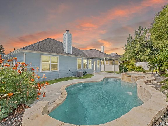 Welcome to 136 Still Brook Lane in the heart of Cibolo, Texas, a beautifully maintained single-story home designed for both comfort and entertaining. This residence offers four spacious bedrooms and two bathrooms with an open-concept floor plan that flows effortlessly from the inviting living room with fireplace to the stylish kitchen featuring granite countertops, a breakfast bar, pantry, and dining spaces for both casual and formal gatherings. The private primary suite provides a peaceful retreat, while the additional bedrooms offer plenty of space for family or guests. The home is fitted with plantation shutters throughout, adding an elegant touch and an extra level of craftsmanship to every room. Step outside to your own backyard oasis, complete with an extended patio, sparkling pool, spa, and fully paid-off solar panels that add energy efficiency and value. The home also includes a two-car garage and enjoys a prime location in the Charleston Parke community, where residents can enjoy jogging trails, playgrounds, and green spaces. Blending warmth, convenience, and lifestyle, this Cibolo home is ready to welcome its next owner.