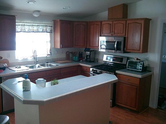 Must see home in this beautiful 55+ gated community. Bright open 3 bedroom, bath floorplan. Eat in kitchen has laminate flooring, new stainless steel appliances, new sink and faucet, island and skylight. The kitchen is open to the living room which has a door out to the covered porch where there are views of the Manzanos. Private backyard. Master bath has garden tub and separate shower. All bedrooms have walk in closets. Community clubhouse with kitchen, dining/meeting room, library, computer room and card room. Recreation building with enclosed heated pool, billiard and exercise rooms. RV storage is available.