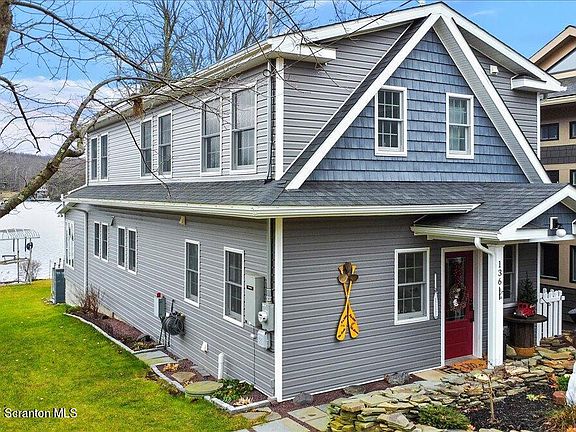 L A K E F R O N T LAKEHOUSE at NEWTON LAKE! Imagine a tranquil home nestled on the shores of a pristine lake watching the most beautiful sunsets in NEPA. This 3-bedroom - 3 full-bathroom home was artfully designed and constructed around one charming wall in 2020 and has such a story to tell. Exemplifying modern meets elegance, this home has been built and designed to perfection, boasting an exquisite gourmet kitchen consisting of custom cabinetry and drawers, built-in microwave, pot filler over the chef's stove, custom butcher-block island and countertops, double wall ovens, sunroom with expansive windows that invite all the beautiful lakefront scenery in, Master Bedroom overlooking the lake, double walk-in closets, Master Bathroom with double sinks, tiled shower, privacy commode, tilt-in Anderson windows, individual window outlets on timers, custom bathroom vanities, two separate HVAC systems, pocket doors to sunroom, eyebrow lights with dimmable timer, 50-year roof shingles, wood-burning fireplace, large storage shed with A/C and insulation, stone lakeside patio, Rinnai tankless hot water heater, outdoor landscaping with natural stone walls, custom mini-fridge lakeside hook-up, first floor spacious laundry room, Generax panel hook-up, and so much more! With versatile spaces and thoughtful design, this home offers a perfect blend of serenity, luxury, & lakehouse charm. Please do not wait on this very special home. Just think of how many memories you can make Living your Best Life at the Lake! This lovely lakehouse also can be utilized as an AirBnb/STR.