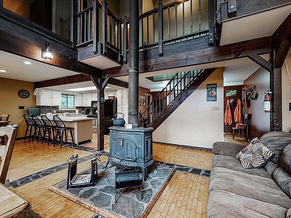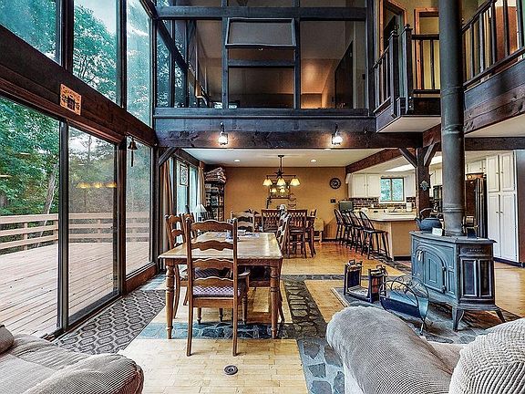 "Serene" A mountain retreat with serene stream minutes from Windham Resort. Nestled on 2.1 acres of beautiful land with a stream, this home offers a picture-perfect retreat. An impressive 2,400 sqft of living space is on offer with vaulted ceilings, an open-concept layout and oversized windows that frame views of the peaceful and private wooded setting. A beautiful blend of wood and stone floors are on show and there are exposed beams in the great room along with a large slider that leads out to the sunny deck. A wood-burning stove and a propane stove ensure complete comfort and there is also a well-equipped kitchen for those who love to cook. The soothing sound of the stream is a wonderful soundtrack to this relaxed lifestyle and can be heard from the main living areas and most of the bedrooms. This beautiful abode is located less than 2.5 hours from NYC and just 12 minutes from Windham Resort for winters spent skiing and hiking throughout summer.