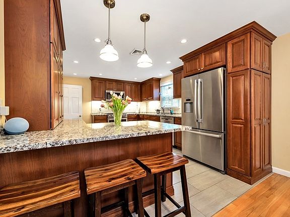Arlington Heights Colonial! The first floor features a generous sized living room with bay window & hardwood floors. Totally renovated kitchen in 2016 with granite counters, gas stove with direct vent & peninsula seating which opens to dining room, making the perfect layout for entertaining. A new first floor full bath added in 2016 & separate home office completes this level. There are three bedrooms, all on the second floor, including a king-size primary with custom closets, cathedral ceiling & a view of tree canopy overlooking the backyard. A bonus room in the basement is perfect for a kids hangout, plus plenty of separate storage space. Many updates over the years including central air, windows, landscaping, fully fenced in yard & MORE! Enjoy all the neighborhood has to offer including the newly renovated park on Hibbert St.,The Dallin Elementary School, Starbucks, Trader Joes & easy access to MBTA bus on Mass Ave. Don't miss this move-in ready opportunity! OH Sat & Sun 12-1:30