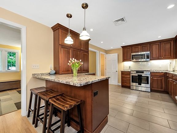 - Features: Countertops - Stone/Granite/Solid, Open Floorplan, Recessed Lighting, Remodeled, Stainless Steel Appliances, Gas Stove, Peninsula