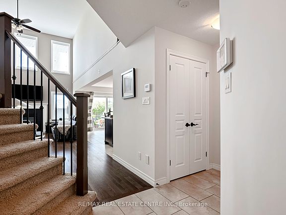 Welcome to Mayberry Hill, a peaceful Grand Valley community where small-town life meets modern comfort. This Thomas Field-built home offers about 2,000 square feet of bright, open living space designed for family and friends to gather and enjoy. Built with quality craftsmanship, it features an open-concept main floor that draws you in with its soaring 17-foot great room ceiling and large windows that fill the living area with natural light. The kitchen blends function and style with stainless steel appliances, a tile backsplash, and plenty of prep space for family dinners or quiet mornings. Hardwood and tile floors flow throughout the main level, leading to a convenient mudroom and laundry with inside access to the double garage. The garage itself adds flexibility, featuring an overhead/retractable screen door so you can enjoy the space as a bug-free outdoor area perfect for summer evenings or weekend projects. Upstairs, you'll find three spacious bedrooms, including a large primary suite with a walk-in closet and an ensuite featuring a double vanity and a walk-in shower. The basement is ready for your ideas, complete with a rough-in for a future bathroom and a large cold room for storage. Step outside to a fully fenced backyard made for relaxing and gathering with a deck, patio, firepit, garden shed, and shade sail offering the perfect spot to unwind. Located minutes from trails, conservation areas, and just 15 minutes from Orangeville, this home combines the peace of small-town living with the convenience of nearby amenities.