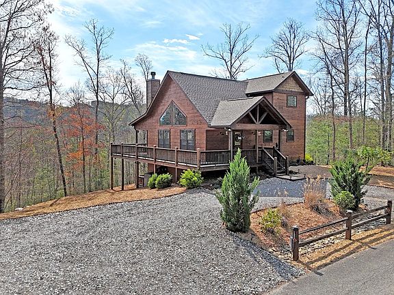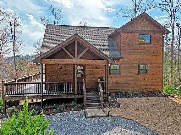 Take in the beauty of this immaculately maintained, FULLY FURNISHED turnkey cabin sitting on a manicured, beautifully landscaped 2.13 acre corner lot. Cabin boasts hand-hewn log siding, tongue and groove interior, a spacious front porch, a wrap around deck and a lower deck to enjoy the sights and sounds of nature. Step inside to enjoy an open concept home that shows off a wall of windows in the main level great room, along with vaulted ceilings, stacked stone fireplace, a HUGE beautiful upscale kitchen, full bedroom and full bath w/laundry. Upper level features a sitting loft and boasts a large master bedroom with vaulted ceilings and a HUGE ensuite bath. Finished terrace level w/ family rm, wet bar (including a dual zone/temp wine cooler), large bedroom, & bath. Upgraded HVAC central multi zone reverse cycle and gas heat with central multi zone cooling, tankless water heater and high speed internet complete this home! Fits the bill for a full time home, second home, or an amazing rental investment. NO HOA FEES! Huge driveway provides plenty of additional space to build a garage. This home is in the perfect location! ONLY 10 minutes to Lake Blue Ridge,12 minutes to Aska Adventure Area hiking trails, Toccoa River kayaking, tubing, fishing, minutes to wineries, fine dining, Downtown Blue Ridge, and only 20 minutes to Tennessee or North Carolina! Checks all the boxes for full time, 2nd home, or rental investment!