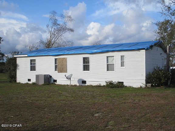 $79,500. CONTRACT PENDING. This 1991 double-wide with 1,568 sq. ft. of living space sits on 5.12 acres of open, level land, with road frontage on two sides. The home suffered some roof damage during Hurricane Michael but is tarped and livable in it's present condition, until the roof can be replaced. All damaged trees were removed, the land root-raked, and the stumps removed. Owners are selling the home ''as-is'' so a buyer seeking financing may need to get a rehab or renovation loan to cover the repair cost for the roof and other minor damage. The 3BR/2 bath double-wide has electric central heat and air (outside package unit); inside unit is not connected but could be converted to a closet; Frigidaire side-by-side refrigerator/freezer; a Frigidaire glass cooktop stove with oven; carpet