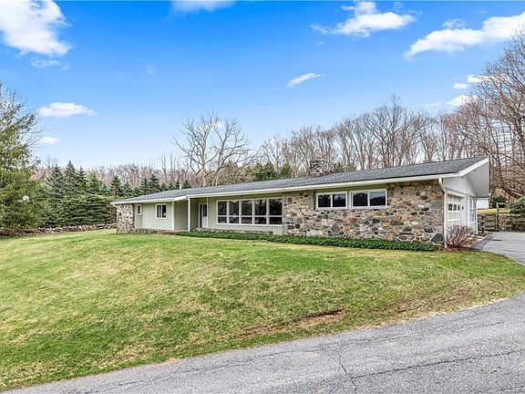 Amazing views and opportunity with this mid-century Ranch style home. Located on one of Katonah's most desirable roads, this custom built home by the original owners takes full advantage of its surroundings. A winding drive with beautiful stone work leads you to the home with a fully fenced level yard and in-ground Wagner built Gunite pool. Mature plantings assure privacy and a feeling of being at your own private resort. The home itself offers a large living room with stone fireplace and a wall of windows to take in the gorgeous views. There is also a large dining room, eat-in kitchen, laundry and powder room. Down the hall is the master with full bath and the 3 additional family bedrooms and full hall bath. Very large basement offers additional possibilities to create a rec room, gym or home office. The setting, location and property are perfect! Come and make it your own.