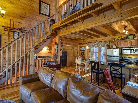 Rustic, chalet style home overlooking flowing creek! 2 bedrooms, 3 baths with gorgeous wood interior. Main level boasts bright & open living area with cozy gas log fireplace, dining area and kitchen featuring granite countertops and stainless steel appliances. Loft area has the perfect sitting area, bedroom and full bath while the basement offers additional living / recreational areas and its own full bath. You will enjoy the outdoors from plentiful deck space overlooking peaceful creek and pasture view. Detached 2 car garage with plenty of room for a workshop and storage. Gentle land allows plenty of garden space and room to enjoy! Being sold fully furnished & ready to enjoy!