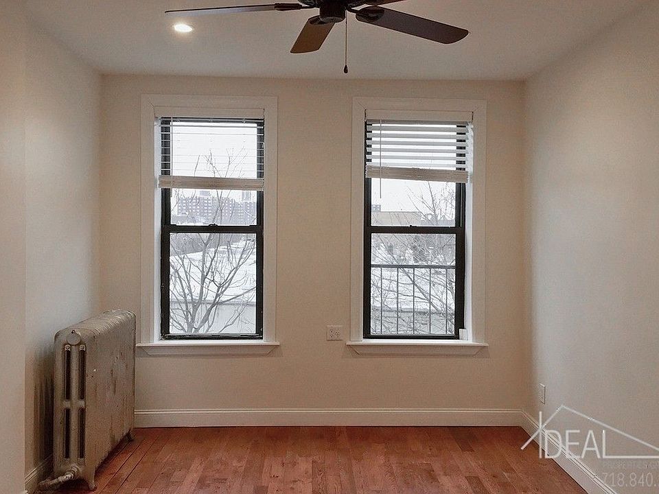 Gut renovated 2 bedroom apartment in Crown Heights by the Utica A/C & 2/3/5 subways. The apartment receives plentiful natural light as there are 7 windows in total. The kitchen has a stunning look to it with granite countertops, new cabinetry, a stainless steel fridge and a dishwasher hidden behind a cabinet like door. The stove is deluxe with 5 gas burners and you have a microwave to enjoy as well. The two king sized bedrooms are located on either side of the unit, which makes this the perfect fit for roommates. There are ceiling fans throughout, the wood floors are pristine and there is brand new tile at the apartment entry and into the kitchen. The bathroom has a high end jacuzzi tub, beautiful fixtures and even a window. This great Brooklyn home accepts small dogs and/or a well behaved cat.
