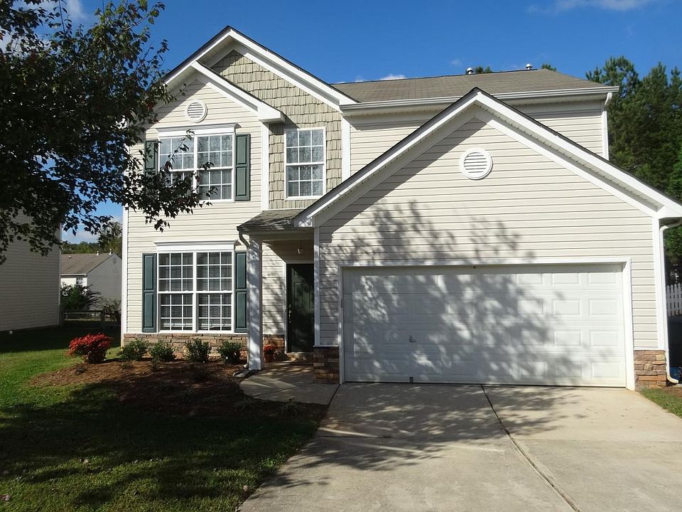 Nice 4bdr, 2.5 bath home for rent. Very clean and well maintained. One of the best locations in Mooresville off I-77, exit 33. Walking distance to Lake Norman Elementary school which is the dual immersion program, it's so good. Superb school district. 2 car garage . Upstairs there is a large Master bedroom and bath (double sink) and huge WIC! Three additional bedrooms upstairs and big laundry room. Downstairs you'll find a large office space, dining room, family room with gas fireplace, eating area, and large kitchen with beautiful tile floors. The sliding doors lead out to a large fenced in backyard surrounded by mature shrubs for your privacy