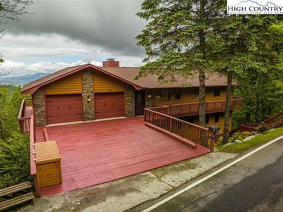 MILLION $$ AMAZING LAYERED LONG RANGE VIEWS!! This large TURN KEY 5 BR renovated family home is ready for you to make memories. Enter the front door (NO STEPS) to a wall of windows with a view that will make your jaw drop. OVER 5,100 TOTAL SQ.FT. ! 3,488 Heated sq. ft. 5 Bedrooms and 3-1/2 Baths. Open plan with wood floors on the main level. The chef's kitchen with large island, granite and custom cabinets is ready to make your gourmet meals. A stacked stone gas fireplace in the living room creates cozy evenings. There is a half bath for guests on this level. Walk out on the oversized deck to gaze at a 3 STATE LAYERED VIEW! FLAT driveway and no steps in. Oversized 2 car garage for parking and extra storage with a workshop area as well. Large primary bedroom suite with deck access and a beautifully renovated bath with double vanity, granite and large walk in shower. Second ample size bedroom on this floor and a full renovated bath with granite and tiled floor. Laundry and exercise room/office plus loads of storage on this level. The large lower deck has BIG views too! Bottom level has 3 more bedrooms and a family/game room plus full full bath. A 3rd smaller lower deck is here to enjoy There is so much room for all to spread out. There is an abundance of additional space that could be finished for more living space or just huge for extra storage. Multiple large storage areas. Over 4,500' elevation for cool days and night all summer long and plenty of snow in the Winter. This property is located within a 2-5 minute drive of the Beech Mtn Ski slopes, Beech Mtn Club pool/tennis area & Golf Course with restaurants. Never been rented.