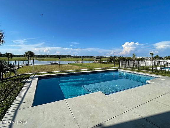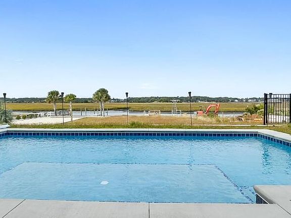 This luxurious waterfront custom built home on Ocean Isle Beach checks so many boxes! The panoramic views of Jinx Creek and the beautiful marsh provide an amazing backdrop. This house is tucked away on a quiet street and has quick access to the bridge on and off the island. On the main level, there are 3 bedrooms with a game room that currently has a pool table in it. Upstairs on the top floor, you will find an open floorplan with a really nice kitchen featuring a Viking oven. The ceilings are vaulted and have ship lap accents on them. There are built in bookcases on either side of the fireplace and sliding glass doors that lead you out onto a balcony that spans the width of the house. You will enjoy stunning sunsets and watch the birds and boats go by. There are two bedrooms on the top floor as well. The elevator provides access to all 3 levels. The custom gunite pool features a submerged sunbathing deck and plenty of deck space. There is also a tiki bar by the pool. The backyard is large enough to add a volleyball court, bocce court or leave it a green space as it is. There is a private dock on Jinx Creek for this house as well as a sturdy bulkhead. This house is sold fully furnished and ready for your immediate enjoyment. The HOA has an ocean front clubhouse and pool, along with a private beach access. Many homes along this stretch of the island are permanent residents, this home has been rented occasionally during the summer months and is capable of generating well over $100k each year if you choose to rent. Seller will provide an allowance for painting and new carpet at closing with acceptable offer.