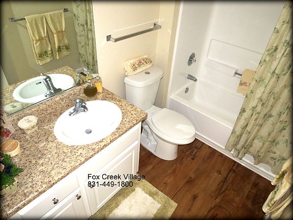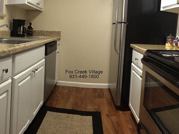 (831) 449-1800 - We offer spacious 1 & 2 bedroom floor plans. Enjoy upscale living with affordable prices ~ you can have it all at Fox Creek Village! The perfect balance between luxury and convenience. Close to Monterey, Soledad and San Jose. 136 W Alvin Dr.; Salinas, CA. 831-449-1800. Come home to Fox Creek Village, a place where you can enjoy amenities that you'll find at more expensive communities. Enjoy the convenience of your own Washer/Dryer hook-ups that are found in every home. Experience the tranquility of our community's heated Pool and Jacuzzi Tub, keep fit in our Fitness Room or relax in our Dry Sauna. Enjoy being active while in our full size Tennis Court or walking to the many nearby malls and shopping centers. Life at Fox Creek Village is great! Enjoy the benefit of having your Water, Garbage and Sewer paid and the view of attractive landscaping without spending your weekends doing yard work. We are located in one of the BEST areas of North Salinas on the corner of N Main St and W Alvin Dr with easy access to HWY 101 and HWY 68. Find us online at www.facebook.com/foxcreeksalinas and Youtube.com/foxcreekvillage and www.twitter.com/foxcreekvillage Come view our community at: 136 W Alvin Dr; Salinas, CA {Corner of N. Main St., near Northridge Mall} **Open 5 days a week by appointment.** 831-449-1800 Try our Text-Only line at 831-222-0038 (Mon-Fri only). (RLNE190879) You will find our 1 Bedroom homes to be very spacious with a lot of storage. You will get 708 sq ft of living space complete with a patio or balcony that also has a lockable storage closet. The bedrooms come with double closets and you will also find more closet space in the Laundry enclosure above the washer/dryer hook-ups that are provided in every home. And you will also find more closet space in the foyer complete with a coat and shoe closet right by the door. You will also appreciate the layout of the home and the dedicated foyer that keeps the rest of your home private to people who are knocking at your door. Our kitchens are long with a lot of cabinet and counter top space with a Breakfast Bar that overlooks the dinning room. And they are equipped with built in appliances and a cutting board along to make cooking meals a breeze. There are lots of reasons to choose Fox Creek Village as your new home! Come see for yourself! Call for your appointment today!