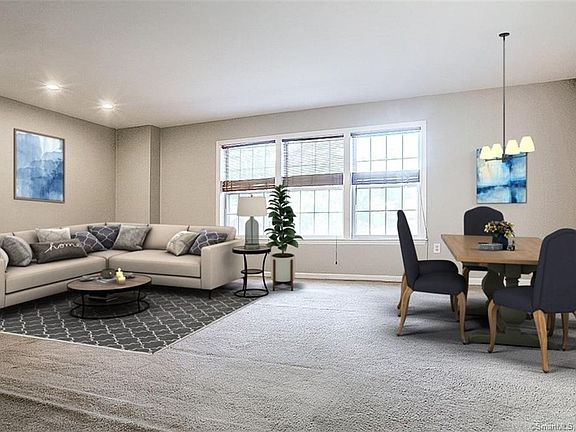 Just painted spacious condo with open floor plan. Master bedroom with walk-in closet and a second large bedroom. One full and one half bath plus second floor laundry. There is also an attached TWO CAR GARAGE! Small well maintained complex conveniently located to hospital, shopping, bus lines and highway. Seller offering a $3K credit at closing towards new flooring and appliances.