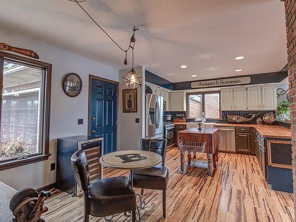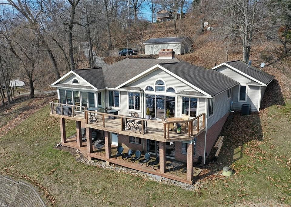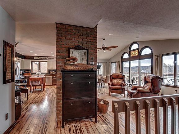 Amazing lake views and location!! This is a great 3 bedroom, 2 1/2 bath lake front home on a double situated on a point with almost 300 feet of water frontage. Open floor plan with cathedral ceilings, wood burning fireplace, first floor master suite that walks out into a sunroom to enjoy the gorgeous lake views! Large lower level family room with a wood burner and high ceilings. 2 large decks, great for entertaining! 2 car attached garage and oversized 1 car detached garage. This home feels very secluded and there is a ton of yard by the lake!! This is a one of a kind lake front!!