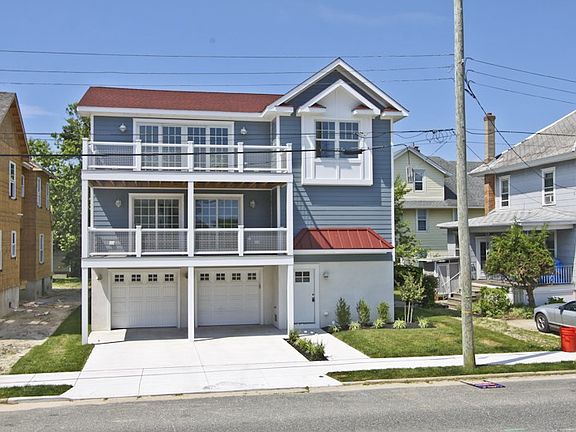 New Construction in Wildwood Crest boasting views of Sunset Lake. This 5 BR/3.5 BA single family home, built by Cold Spring Carpentry, offers an upside down floor plan with multiple water exposures. With fine attention to detail, upgrades include custom cabinetry with granite counter-tops and matching stainless appliances; sand-on-site oak hardwood flooring flowing throughout the kitchen, great room, dining area and hallways; Anderson windows and sliding door package; Ipe decking on both balconies, solid core doors, marble and ceramic tile in both the master and the junior suite. Additionally there are two storage rooms at grade which both lead to the spacious garage. Additional features include 2x6 exterior walls, high efficiency multi-zoned HVAC system, on demand hot water heater, James Hardiboard siding and an Atas metal accent roof.