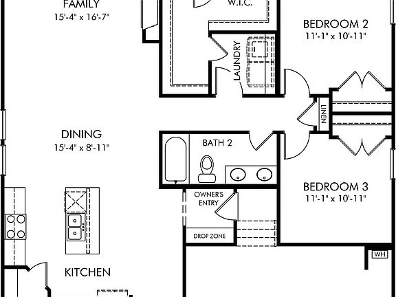Versatile flex space in the single-story Henley makes a great office or playroom. Anchored by a useful island, the open-concept kitchen flows effortlessly into the living areas. Our Classic package adds dark vinyl floors and granite countertops.