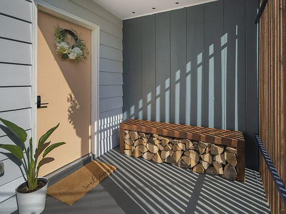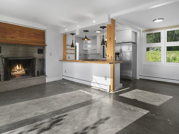 Efficient eat- in kitchen with butcher block countertops, open cabinets and high-end stainless steel appliances. The living room  fireplace is a wood burning laid stone fireplace. Two bedrooms with sliding closet barn doors and custom-built cedar organizers.  Large third bedroom on the other side of the home that could be a primary suite, or a versatile flex space. The exterior features a carport that leads to the mudroom. There is a custom-built bench on the front porch, plenty of firewood to utilize for the fireplace, and you will find a large garden for the avid gardener in the front. A shed can be found out back with space for storage. Relax on the beautiful rear gravel patio or soak in the hot tub while you enjoy the smells coming off the grill or smoker.