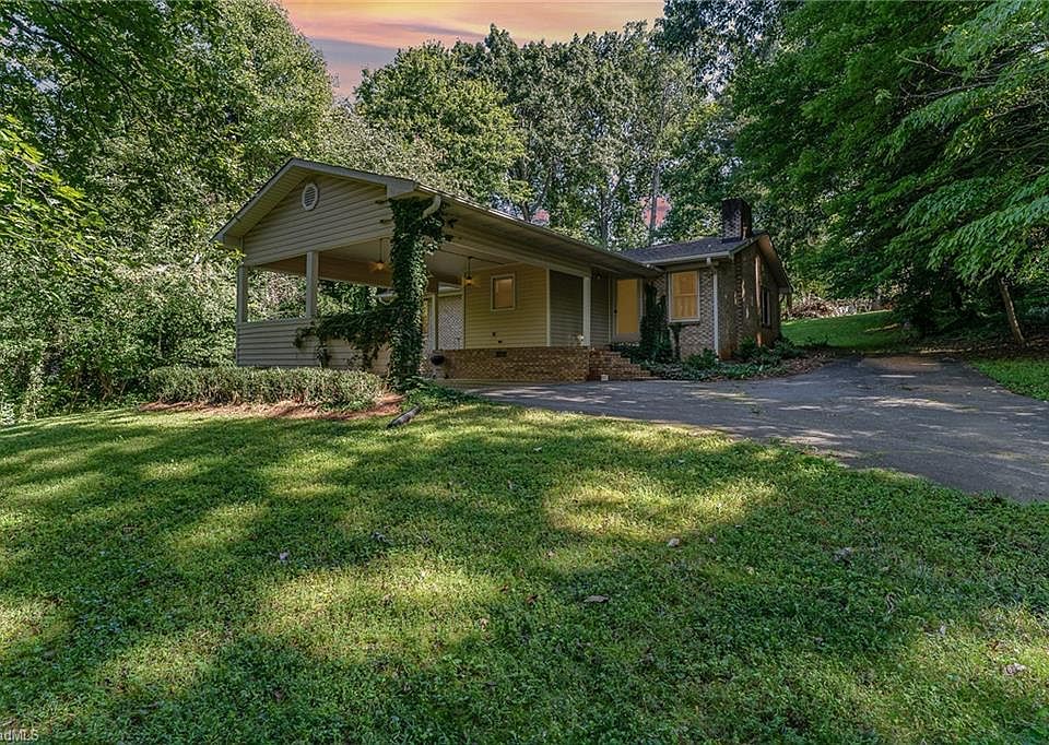 Motivated sellers! The sellers offer a $5000 allowance for kitchen renovations or closing costs. Welcome home to this cozy retreat in the heart of King. If you want privacy, don't miss out on this adorable ranch nestled in the woods, with Spectacular trees all around. The open floor plan has much to offer with its 4 bedrooms, 2 updated baths, laminate floors, and more. The cozy den is a perfect place to relax, and it features an office space, gorgeous built-in shelves, and a fireplace. The paved circle drive offers plenty of convenient parking with a two-car carport and single-car garage. Conveniently located, this home offers easy access to shopping, dining, and entertainment options while still providing a tranquil escape from the hustle and bustle.