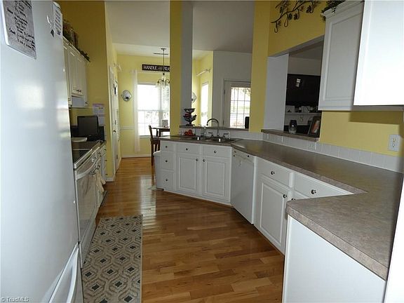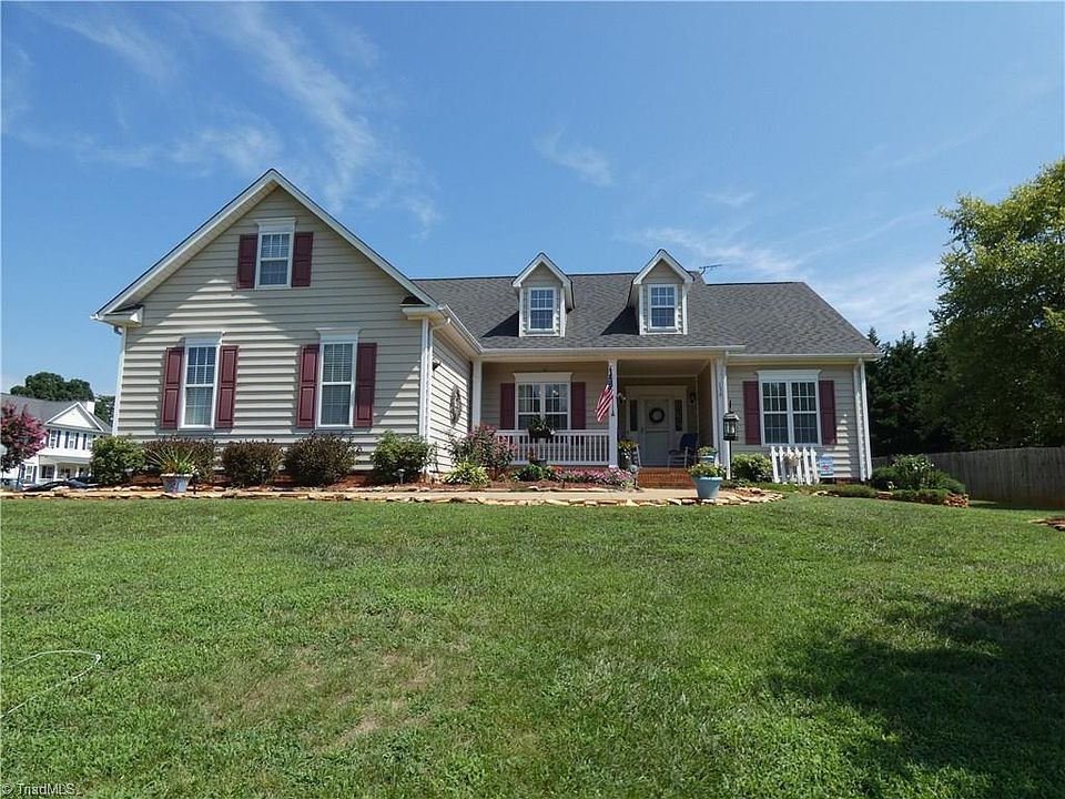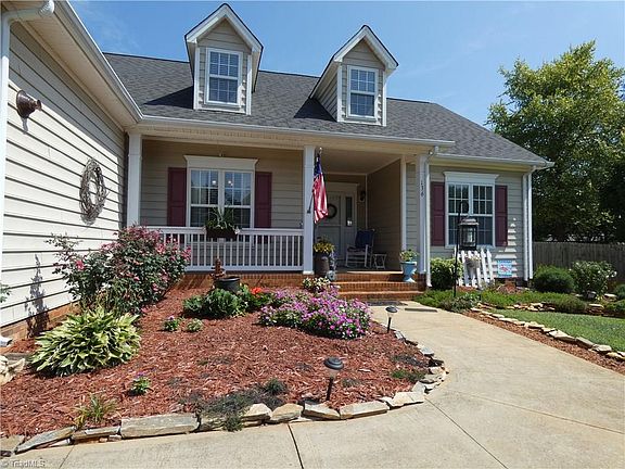 Great one level home with stunning architectural details! Beautifully maintained with meticulous landscaping. Desirable well-established neighborhood. Lovely open floor plan - living room with vaulted ceiling and gas fireplace, formal dining room with chair railing. Nice master suite with trey ceiling, walk in closet, double sinks, garden tub and separate shower. Nice size yard with deck and storage building. USDA 100% financing!