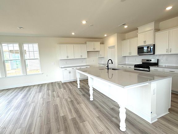 MOVE IN READY!!! Luxury Living Awaits - Stunning Homes, High-End Finishes, Pool Community, & Close to Downtown! Welcome to Station Pointe - Conveniently Located Minutes from Downtown Angier and Fuquay-Varina! Station Pointe is just steps away from the new NC 55 Bypass for easy access to all areas of the Triangle! Built with quality and lasting craftsmanship, our homes feature durable James Hardie® fiber cement siding paired with classic stone accents. The Callaway plan is designed to impress with its open layout and stunning features. The kitchen is a true showstopper, featuring a sprawling 10-foot quartz island, abundant upgraded cabinetry, stainless steel gas appliances, a ceramic tile backsplash, and a walk-in pantry. As the heart of the home, the kitchen seamlessly flows into the living and dining areas, creating a perfect space for entertaining. Luxury vinyl plank flooring extends throughout the main floor and into the home's wet areas. Upstairs, the spacious primary suite is inviting, while the en-suite bathroom offers dual quartz-topped vanities, separate walk-in closets, and a 5-foot tiled shower with a bench. The generously sized secondary bedrooms provide ample closet space, and the shared bathroom includes a double vanity with quartz countertops and a tub/shower combination. The loft is great for a variety of uses. Completing the home is a 24-foot covered patio, perfect for outdoor relaxation. Step outside and enjoy North Carolina's beautiful weather year-round on your back patio. In the summer, take a refreshing swim in the community pool or explore the scenic walking trails. With shops, restaurants, hospitals, and major roadways just minutes away, everything you need is right at your fingertips. Renderings and photos are for illustrative purposes only and may not reflect the final construction. May Completion.