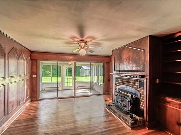 Minutes from the city and yet feels like the country! Grand home with many custom features, hardwood floors, built in shelving, custom paneling, main-level master, tile floor sunroom, huge kitchen and three fireplaces ! Attached garage and detached garage! Outbuilding and detached garage are perfect for the hobbist or huge family gatherings. Out building and garage sold as is! This house is just waiting for some personal touches! Septic permit not found, year built is 1945 according to realist