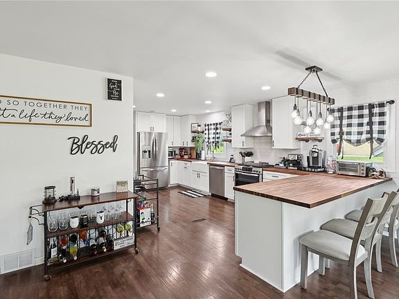 If you are looking for your own piece of paradise, this is it! The home has a beautifully updated kitchen that has been expanded to include an island with seating and a pantry. The main bedroom is on the first floor and the laundry has been brought upstairs for true one level living. There is a large addition on the back of the home featuring a see through fireplace and is an incredible living room/game room. All of the bathrooms have been renovated in the home. There is a finished basement with a downstairs bedroom and bathroom for anyone who is needing their own space. The backyard oasis includes a trex deck, large 14x32 inground fiberglass pool, extended outdoor bar/entertaining area with a TV and outdoor fans, and plenty of lounge space. There is a lighted walkway with beautiful stairs and retaining walls inviting guests to enter the backyard. For the person who loves cars or wants additional garage space, this home boasts 5 garages. Come see this great home before it is gone!
