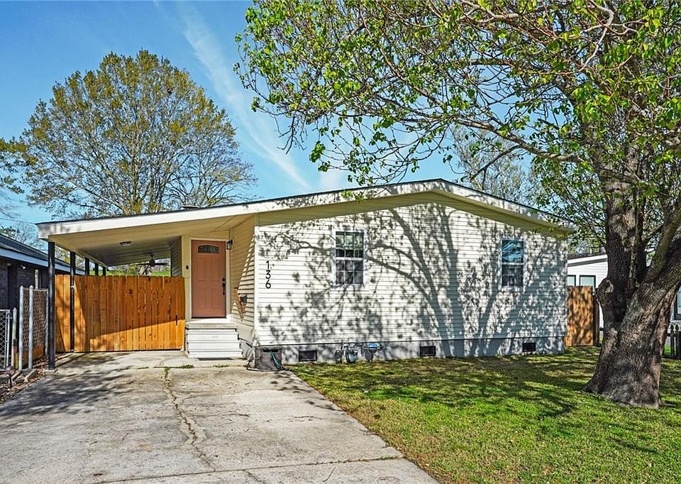 • 1382.3 square feet of total living area • 409.8 square feet of non-living area (carport) • Hand-built and hand-painted custom cabinets • Quartz countertops • Butcher block breakfast bar (4 bar chairs included) • Walk-in pantry • Kitchen Appliances bought new and installed in 2022: • Frigidaire Gallery 30” Front Control Gas Range Oven w/ Air Fry • Frigidaire Gallery 1.9 Cu. Ft. Over-The-Range Microwave • Frigidaire Gallery 27.8 Cu. Ft. French Door Refrigerator • Frigidaire Gallery 24” Built-In Dishwasher w/ EvenDry System Engineered bamboo flooring through out the house (excluding the bathrooms) Master bedroom includes an ensuite bathroom with porcelain tiled walk-in shower, walk-in closet, and backyard access via French doors. Partial roof replacement in 2022, Completely fenced in yard with access points on either side of the house.Easy access to the levee at the end of the street. • New/improved house pilings in 2022
