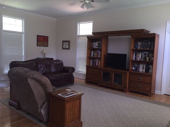 Beautiful 3 Bedroom, 2 1/2 Bath home with a large great room. Mater suite has abundant closet space with a garden tub in the master bath. The hardwood, brick, and tile flooring in this house is amazing. Outside features a 2 car garage and fenced back yard, which is great for children or pets. Detached storage building is divided into 3 sections: storage, workshop, and boat/lawnmower sheltering.