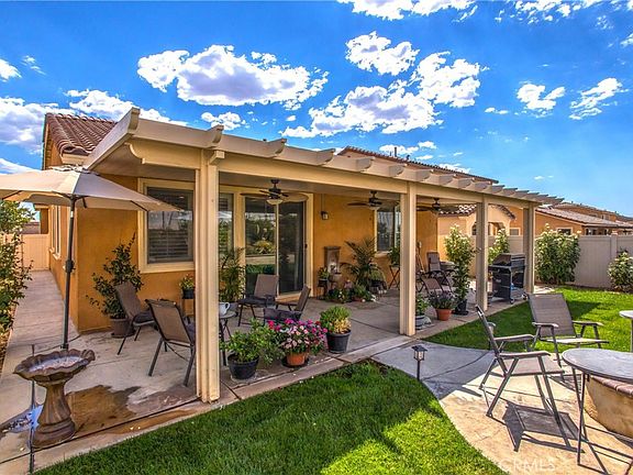 Sundance North! Beautiful home with many upgrades, meticulously maintained. Make this home yours. This home offers 3 bedrooms PLUS A BONUS ROOM! and 2 bathrooms. Some of the tasteful upgrades in the homes consist of a Shutters throughout , firepit built in backyard, Alumawood Patio covering, trending lighting fixtures, upgraded flooring. Backyard is well landscaped and the rose bushes and ornamental plants are mature. SOLAR estimated $70 montlhy. Community features such as- pool, basketball courts, playgrounds, bbqs, firepits, community activities