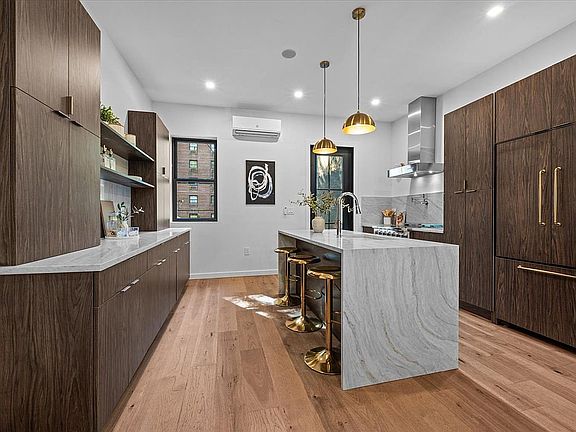 Restored period detailsDramatic waterfall-edge islandSolar-powered skylightsModern designSleek black corniceBrand-new stoopStunning wood mantel fireplace