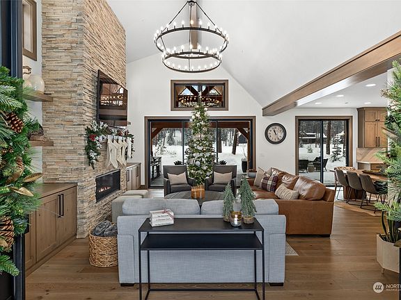 Golf view home for $650/FT! This custom home is designed to make the most of Suncadia life with tee to green views of Rope Rider #13, an outdoor kitchen and dining area, an oversized fire pit, hot tub, and upgraded landscaping with irrigation system. Inside you'll find white oak hardwood floors, Cambria Quartz counters, and rustic alder cabinets. Furniture and fixtures from Crate & Barrel, Pottery Barn, West Elm, RH give the entire home a warm, inviting feel. With a primary suite on the main and upstairs, with two additional guest rooms + XL bunk room, this home can sleep 14. Perfect for large gatherings / short term rentals. Can be turn-key for the right offer! Buyer to pay .5% of sale price to Suncadia Fund for Community Enhancement.