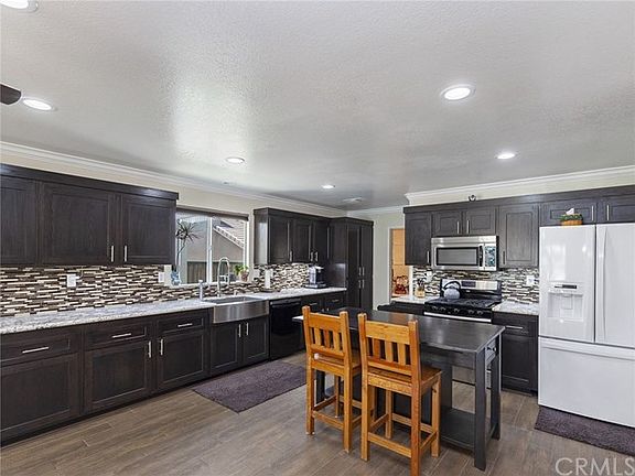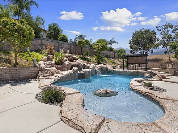 Amazing, Beautiful, Fun Pool Home! This South Corona Treasure has it All! Huge, Resort Style Entertainer's Backyard, Features a Rock Pool with Raised Grotto Spa, two Cascading Waterfalls with Rock Slide! The Large Covered Patio, Middle Pergola Patio, Open Fire Pit & Basketball Court, provide Space for everyone to enjoy! Freshly Painted, inside & out! Two rooms downstairs can be used for offices or bedrooms, one has an attached bathroom with an accessible shower. Engineered Hardwood flooring is plentiful downstairs. The Upstairs Master Bedroom Suite features a privacy Bathroom Barn Door, dual sinks & huge walk-in closet. The Shower, Soaking Tub & Balcony share breathtaking South hills view! Three additional bedrooms, large Hall Bathroom & Loft Family room finish the upstairs. The remodeled kitchen has new cabinets, granite counters, stainless steel farmhouse apron sink & custom tile backsplash. Extras include, a Hidden Storage Cabinet, Murphy Door AV Equipment Closet, 60" Wall mounted TV & more, Outside custom built shed, plastic wrapped wood jungle gym provides years of enjoyment, Solar Powered Gable Fan & more! Location is GREAT, Privacy! No neighbors behind, it backs up to the Oak Street Creek Reservoir. So much more to experience & Love!