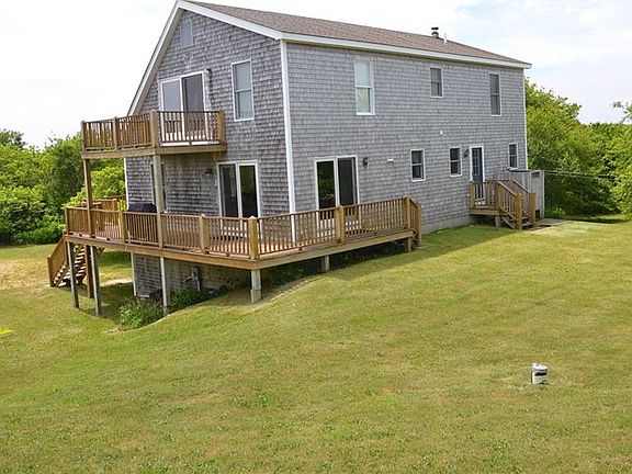 Fully dormered cape-style home, tucked off lovely Cooneymus Rd. Paved road convenience, yet the house and 1.9 acre lot are hidden from street view. The roomy cape offers an open floor-plan, a first floor master bedroom with ensuite bath, laundry and half-bath; and expansive (856 sq. ft.) of decking. Upstairs offers 3 additional dormered bedrooms, a sitting room with upper deck and a full bath. The property is located near major walking trail systems including Rodman's Hollow' Fresh Pond and the trail to New Harbor across Old Mill and Beacon Hill Rds. Cooneymus Beach and the Dicken's Farm Rd. Trails are also nearby. Pretty country lot with mature trees.