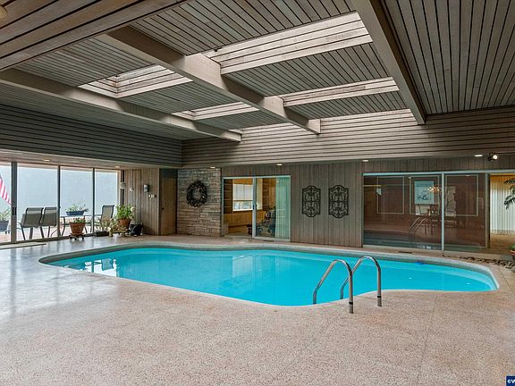 May be possible to subdivide! 1.22 acres in the city with parklike setting & panoramic views. Custom mid-century modern home designed in the style of Frank Lloyd Wright. Over 5000 SF with an indoor heated swimming pool. 4 beds, 4.5 baths, spacious great room, 3 ensuites, 3 fireplaces, dual living or ADU potential & shop area in the basement. Seller will credit Buyer with flooring allowance (Amount TBD) with acceptable offer.