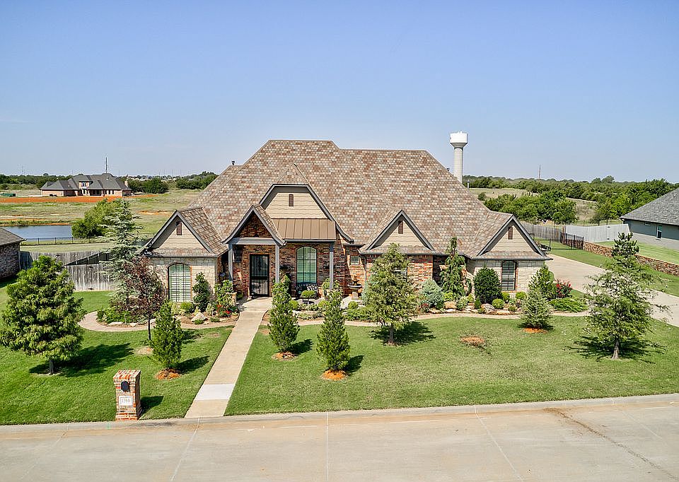 Everything & MORE! This luxury home was once the model home & has only been lived in for the past 3 years. OVER 500 square feet of outdoor living space with views of one of the neighborhood stocked fishing ponds & a green belt. Inside you'll find the Master Suite & OFFICE on one end of the house, & 3 additional bedrooms on the opposite end. Upstairs is a fantastic BONUS ROOM & half bath. FOUR-CAR garage, complete with an 8-person above ground safe roof & stairway leading up to abundant STORAGE space in the decked attic. Other amenities include wood shutters throughout the home, sprinkler system, built-in bar/butler's pantry & wine cooler off of the formal dining area, vaulted ceilings, coffered ceilings in the living room, top-end Thermador appliances, tankless hot water & storage everywhere. First-class landscaping & natural curb-appeal makes this one of the most beautiful homes in Norman. Virtual Tour Available.