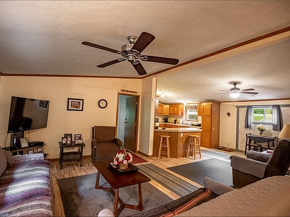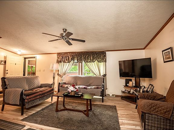 This darling little hideaway can be all yours!  Tucked in the woods you will find this neat as a pin 3 bedroom. 2 full bath manufactured home. The seller has done tons of work here including;new 30 year roof in 2020;All American Leaf Free gutter system; remodeled the main bathroom and had Bathfitters install the shower;Rheem water heater in 2019;Heat pump/ A/C and furnace 2021;New front & back storm doors, new windows throughout(except for small kitchen window.) dishwasher opening currently houses a mini freezer but can hold dishwasher; Sliders in dining area were replaced with a window and insulation; Kitchen appl pkg is included plus washer and dryer.  (GE Refrigerator andWhirlpool washer were purchased in 2019;Ceiling fans included are a year old; Spacious rooms, kitchen has a breakfast bar and a walk in pantry. Separate laundry room to the backyard with fencing for a dog.  Covered deck overlooks the ravine w lots of trees for your own private oasis. Shed is incl. (NO sign in yard.)