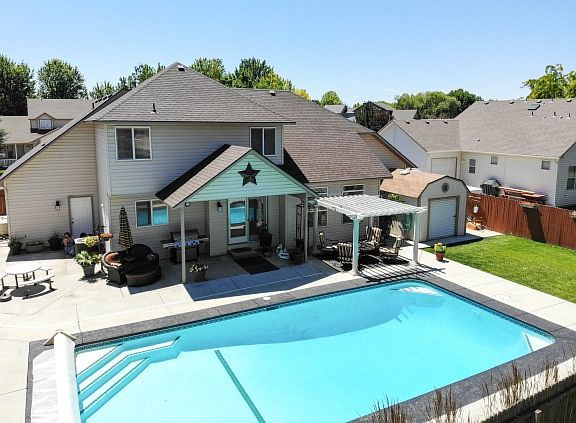 The pool is very low maintenance, because there's no need to add chemicals! A salt water pool is good for your skin, hair, and doesn't ruin your bathing suit! Measuring 38x18 and 9'3" at the deep end, it's perfect for a diving board. The pool is heated, comes with a solar cover and a cover for winter. Located South of the I-84 with EASY freeway access. HUGE RV parking! Main level master suite and utility. Formal dining room can be used as a den. Brand new roof! Upgraded fixtures, granite counter tops, brand new water softener plus both water heaters have been replaced. 5-burner gas stove. You'll love the covered patio & 2 gazebos. South facing front yard.