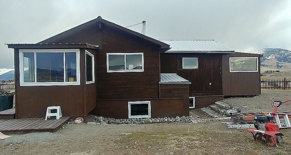 3bd/1.5bath approx 2000 sq ft including deck, shed and greenhouse on 1 acre of open land spectacular 360 degree mountain views new high efficiency wood-stove front and side decks Just finished remodeling with new paint inside and out, all new plumbing, drains and fixtures new 1000 gal septic tank and new drain-field with 210 feet chamber system stained glass front door entryway/mudroom with closet and large view windows lots of rustic wood and natural rock decor controlled zone silent heating energy saving honeycomb blinds on all windows led lighting throughout hardwood flooring, vaulted ceilings 8' ceiling in lower daylight basement with direct doorway to outside includes all appliances (except frig) metal pitched roof well insulated good well 12' x 16' shop/storage shed with vinyl siding arched greenhouse wood picket fencing halfway around property $260,000 For sale by owner 406 224 3034