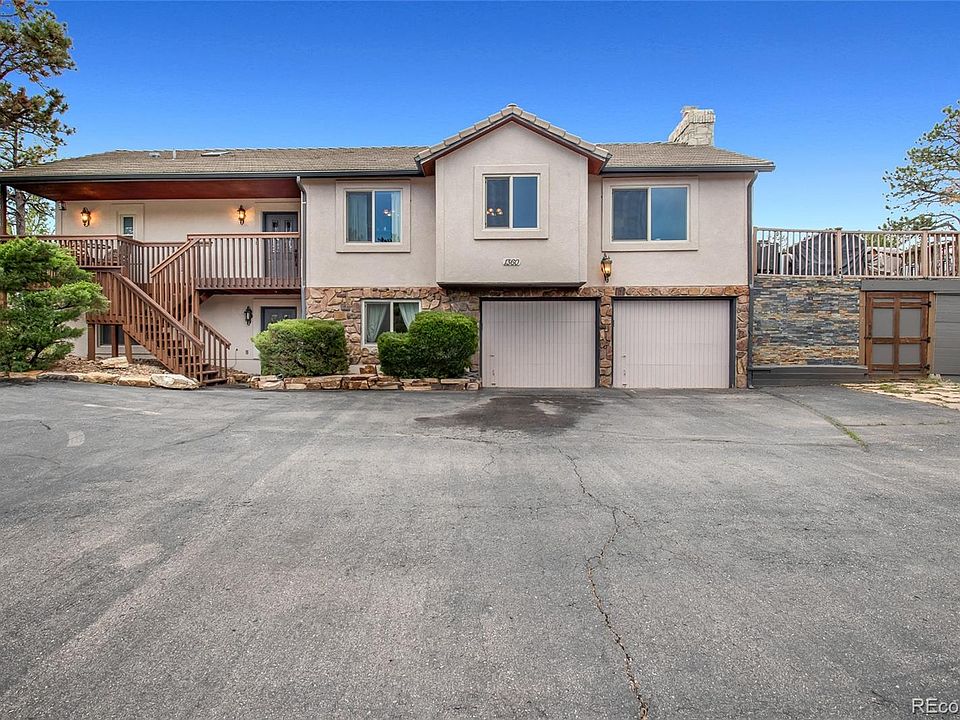 Here it is.....your private family retreat loaded with character and charm! Almost one acre of land located in highly desirable Woodmoor Subdivision. Conveniently located which provides for an easy commute to Colorado Springs or Denver. Inside enjoy main level living, newly remodeled primary bedroom and remodeled en-suite bathroom. Also, on the main level are two additional bedrooms and a full bath. Open floor plan with vaulted ceilings and exposed wood beams. Gorgeous fireplace with huge windows as a backdrop. Enjoy the roaring fire from great room, eating area, and kitchen! Updated kitchen with granite counters and large island. Downstairs enjoy open rec room, another bedroom and full bath. Three large decks off the home including one from the main level primary suite. Enjoy the beautiful Colorado outdoors with this property! Mountain views, mature pine trees, flagstone patios and fire pit. Plenty of room for activities such as cornhole, volleyball, playset, ziplines and trampoline which are all included.