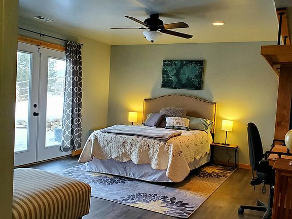 Charm, character, and comfort - this home has it all - great location, floor plan, mother-in-law apartment. Extra parking for RV or cars, large fenced back yard with room for a garden and chickens. Log accent stairs lead to 2 bedrooms and full bath plus nice master suite and laundry on upper level. On the main level - welcome guests into the open kitchen/dining room area. Forever views of the Road Plateau from the living room. Mother-in-law on lower walk out level has kitchen, charming bedroom, and room for another washer/dryer. Both kitchens are well appointed with newer appliances. All furniture and washer/dryer on lower level are negotiable - for a turn-key property. There may be some family time where showings cannot take place.