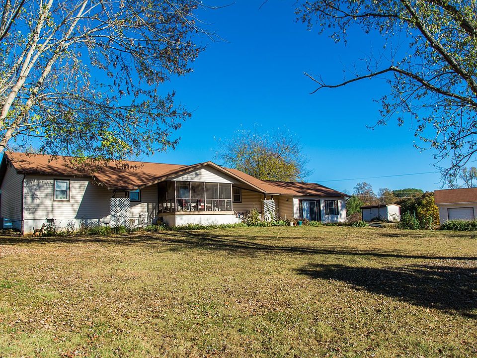 Peaceful country living, Update home w/ open floor plan, large BRs, & den w/ wood stove & built-ins. Put your stamp on this clean slate house w/ many options in the open living/kitchen/dining room w/ stone FP that can be gas or woodburning. Kitchen boasts an abundance of cabinetry & counter space. Room off the kitchen holds freezers & shelving to store your harvest. Propane gas stove w/ option for electric. Each BR is spacious enough for large furniture. Hall & master BAs have been updated. Oversized laundry w/ more extra storage. Den/bonus has, you guessed it, more storage w/ multiple built-in shelves & a storage closet. The wood stove has a fan to circulate the heat to the main part of the home, keeping winter utility bills wonderfully low. Updated items in this home include: plumbing, electrical, & duct work, along with flooring, tile, & so much more. Outside we have a 2-car detached garage w/ wkshp, a barn w/ extra storage, 1.4 AC of fenced pasture, a chicken coop, another storage building, a screened front porch, a back deck, & multiple fruit vines/trees. This home is ready for you to continue the love that has grown here. Welcome to the country!