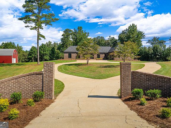 Making a lasting impression with bonus space for an audacious car garage to customize your way! AND a perfect basement for an outstanding wine cellar! Let your imagination run wild. This is the quintessential southern luxury brick home now brought forward for the modern professional! Gracefully poised on 5 manicured acres this home has a place for everything and everyone. The open foyer provides for your design ideas, with multiple opportunities for artwork. A sprawling great room spreads to the dining room and kitchen. From gourmet to grandma.... They will totally enjoy the heart of the house....the kitchen. An enormous island is central with a full array of cabinetry and large workspace. Lovely solid surface counter tops and cutting edge design in a full tile wall backdrop. This kitchen with a Thor Kitchen 6 burner propane gas range and convection oven is to die for! Top this space off with a full butler's pantry! Bedroom design you will not have seen before. Main level the owner's suite encompasses a huge area. The master bath cabinets are so great including immense storage with style. There is a separate shower and soaking tub. A wow feature you will love is the master closet laundry, custom designed pass through the closet to an expansive closet space and laundry with additional deep sink and folding table built in. Also on the main level are 2 more secondary bedrooms, one close by perfect for young children and another across the house for a private destination. The dramatic staircase leads upstairs to an amazing luxury suite with private bath and an additional living area, you name it. There is plenty of unfinished basement area to use as storage or design a full movie theater room! Unique best describes the property in that there is a 2800+- square foot warehouse building with loading dock and roll up doors on the land and included in the purchase along with a large storage barn. Come to the country just minutes from town. The home is 1.4 miles from US Hwy 27 the 4-Lane connecting you to all parts beyond. Carrollton is just an 18 minute drive and Newnan a 35 minute drive. So you see you can live in Roopville go to Heard County schools and have an easy commute to work in any direction. For all of those who work at home there is high speed fiber internet service available here as well. There is additional land available.