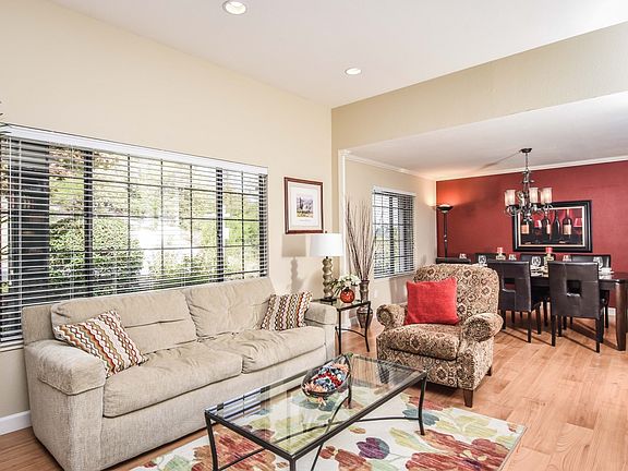 This gorgeous remodeled home with 4 bedrooms, 2 1/2 baths, approximately 2058 sq. ft. sits on a dramatic hillside lot of over a 1/4 acre. Outside you'll find a freshly painted exterior and a nicely landscaped front yard with a rose garden and dramatic Japanese Maple. Just inside, you'll find a spacious living room and formal dining area with vaulted ceilings, including laminate flooring with a natural cherry finish. The heart of the house is an elegant remodeled kitchen with breakfast nook featuring cherry cabinetry, granite counters, tile backsplash & flooring and professional style appliances by Thermador, Dacor & Bosch. Just off the kitchen is a family room with abundant natural light, gas fireplace, ceiling fan and vaulted ceiling opening to an entertainment size deck, surrounded by mature redwoods. The master bedroom features a vaulted ceiling and opens to a second smaller deck, while the master bathroom has been nicely renovated with a tile shower and includes double sinks and a separate jetted tub. The back yard is terraced down the hillside and features a level area for play, as well as numerous fruit trees including plum, lemon, orange and fuji apple. Additional features include a side yard with driveway and gate for possible boat or RV parking as well as a fenced dog run.