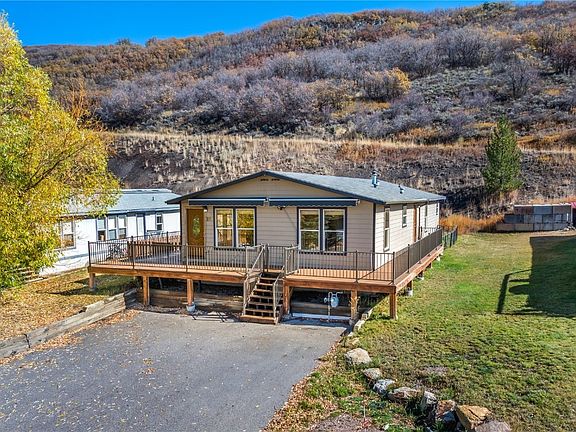 The manufactured home in a highly desirable location close to downtown Steamboat Springs. The owner does not own the land, and the current lot rent is $927/month. This 3-bedroom, 2-bathroom home, spanning over 1600 sq ft offers plenty of space for your family to enjoy, as well as a spacious yard, storage shed, and paved driveway with room for up to three vehicles, a boat, or a camper. Open floor plan on one level with plenty of storage space, and two washer/dryer hookups. The house is conveniently located in the downtown area, just up the hill from the Yampa River, Core Trail and Community Center with easy access to incredible breweries, playgrounds, parks, bike shops, bars, and restaurants. From the deck take in views of Emerald Mountain, Sleeping Giant and the West End Valley. The yard is fenced with a large outdoor deck. Copper Mountain Estates takes care of the streets, snow removal and grounds. Pets and long-term rentals are allowed with an additional lot rent/pet fee with the approval of the park management. Must be approved by land owners before offer acceptance. Application is available upon request.