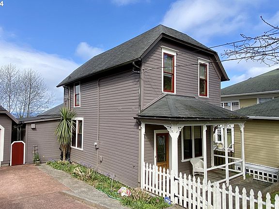 This classic Astoria Craftsman home offers Columbia River views, an open kitchen, living Room with cozy gas fireplace, and a separate grand dining area, plus 1 bedroom and bathroom on the main floor. Upstairs you'll be surprised by the height of the ceilings, with 2 bedrooms, 1 bath and a bonus landing area that would make a perfect reading nook. The front porch overlooks the fenced front yard, while the North deck offers plenty of space to take in the views of the ships passing by. Detached garage and storage shed in back yard plus a bonus finished room in the basement will give you plenty of storage space and room for projects.